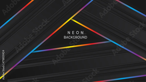 Rainbow list on stripe black background. Connected lines asbtract sahpe. Minimalism chaotic illustration background.