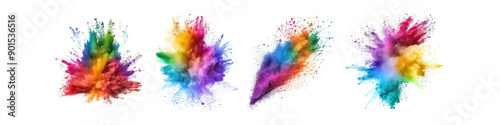 Rainbow powder exploding, splattered creativity hyper realistic highly detailed isolated on transparent background