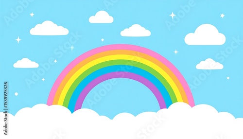 Rainbow Sky Cloudscape Illustration.