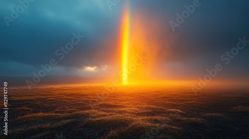 rainbow, sunrise, meadow, mist, fog, sky, field, grass, landscape, nature, gold, light, morning, dawn, sun, horizon, cloud, hours, dramatic, beautiful, bright, colours, vibrant, spectacular, peaceful, tranquil, serene, natural, phenomena, atmospheric, majestic, outdoors, scenery, photo, art, travel, inspiration