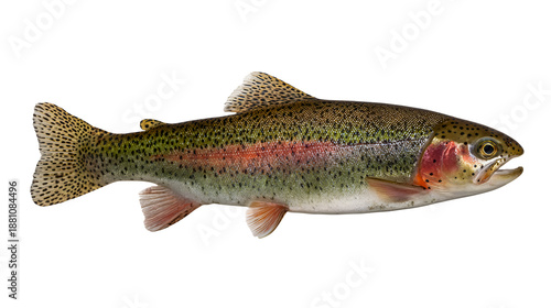 fish, trout, freshwater fish, rainbow, side, view, isolated, transparent, background, back, stripes, along, side, white, belly, black, spot, body, orange, yellow