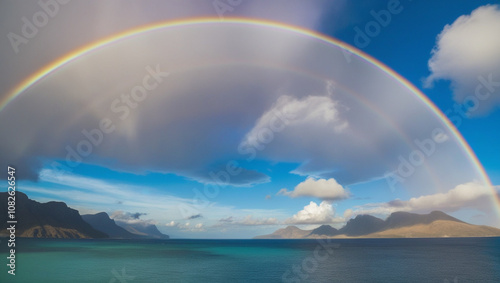 cloud, rainbow, lake, nature, sky, colours, water, blue, weather, rain, storm, outdoors, sunset, horizontal, photo, light, calm, colourful, no people, travel destination, beauty, grass, green, road, dusk, horizon, majestic, color image, night, springtime, sunlight, evening, famous place, ocean, rural, sun, field, rural scene, tranquil scene, cloudscape, japan, panoramic, spectrum, vale, dramatic sky, mountain peak, village, waterfall