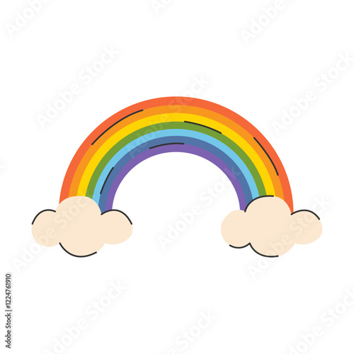 rainbow, cloud, sky, nature, weather, after rain, sunshine, sun, rain, storm, spring, summer, colourful, bright, high-coloured, spectrum, arch, curve, colours, colours, red, orange, yellow, green, blue, violet, fluffy, cumulus, meteorology, forecast, isolated, white background, object, illustration, design, clip art, element, decoration, fairy tale, magic, magical, fantasy, dream, hope, happiness, positive, cheerful, children, children