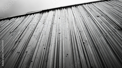 rain, reflective, metallic, weather, line, corrugated, outdoors, vertical, overcast, surface, gloomy, overhang, wall, abstract, modern, atmosphere, architecture, resilient, perspective, symmetry, metal, cloudy, deep, industrial, construction, facades, sleek, structure, rainwater, minimalist, drenched, groove, texture, minimalism, pattern, urban, grey, steel, angle, building, monochromatic, dimensional, hard-wearing, droplet, exterior, design, artistic