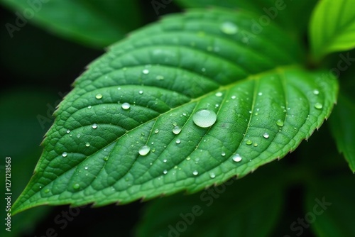 Raindrop-covered leaf with intricate veins texture, greenery, nature, plant textures