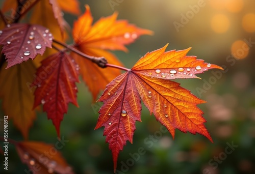 raindrops colorful autumn leaves nature scene vibrant colors freshness dew moistened foliage, water, forest, vivid, texture, detail, outdoors, flora