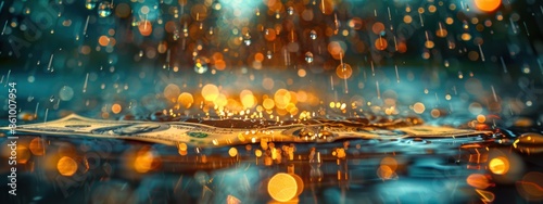 Raindrops of Cash: Colorful bills raining down like a downpour, creating a whimsical and optimistic tone.