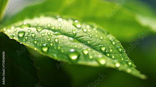 Raindrops on green leaves in nature close-up