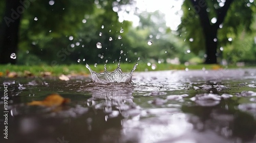 raindrop, splashing, puddle, water, blurry, nature, fall, ground, droplet, crown, wet, liquid, bokeh, leaf, autumn, park, blurred, surface, ripple, fluid, season, outdoors, motion, falling, fresh, glimmering, calm, serene, overcast