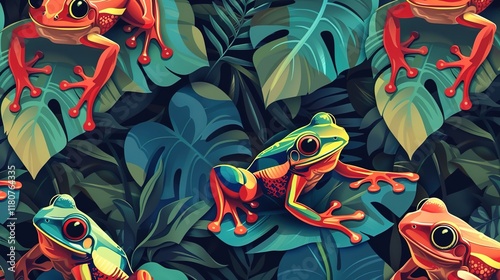 Rainforest frog seamless pattern wallpaper