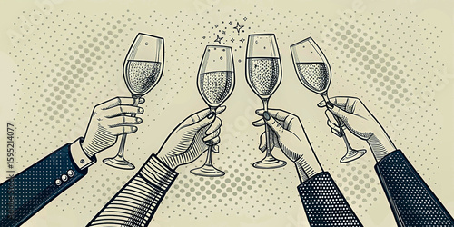 toast, champaign, celebration, cheer, sparkle, party, festive, hand, goggles, bubble, wine, clink, elegance, drink, night, event, illustration, gold, happy, art, vibrant, fun, posh, joy, mood, gathering, upscale, glistering, bubbly, friends, occasion, luxury, shimmer, artwork, animated, stylish, chic, glamour, wine glass, celebratory, motion