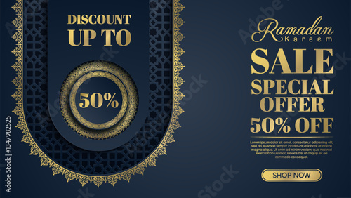 Ramadan Kareem Grand Sale Promotional Background with Traditional Islamic Pattern Designs