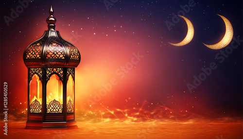 Ramadan Kareem lantern lamp and Eid celebration the night bokeh view