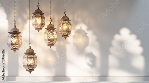 "Ramadhan 2025 Background: Islamic Decorative Design with Crescent Moon and Lanterns" created by AI