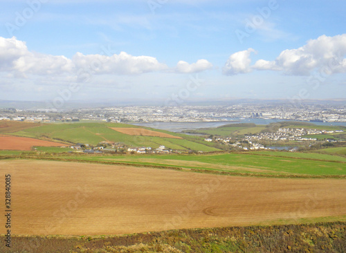 bay, coast, cornwall, coastal, sand, sea, field, farm, agriculture, cliff, road, england, rock, headland, peninsula, beach, village, aerial, house, cliff, plymouth, sound, peninsular