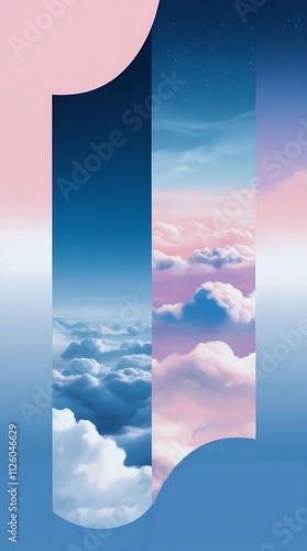 Random clouds with different shapes in pink to blue color theme sky landscape illustrated view phone wallpaper 9:16 AR