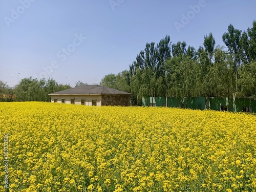 field, yellow, landscape, sky, agriculture, flower, rapeseed, spring, nature, canola, blue, meadow, farm, oil, plant, green, rural, summer, flower, oilseed, crop, countryside, seed, tree, cloud