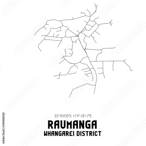 Raumanga, Whangarei District, New Zealand. Minimalistic road map with black and white lines