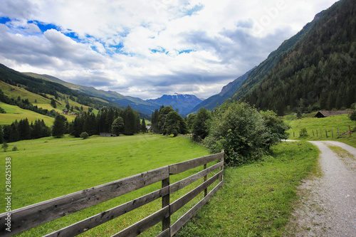 mountain, alps, landscape, austria, village, summer, vale, nature, meadow, hill, travel, hiking, biking, vacation, bungalow, countryside, peak, tour, sky, cloud, bike path, beauty, famous, forest