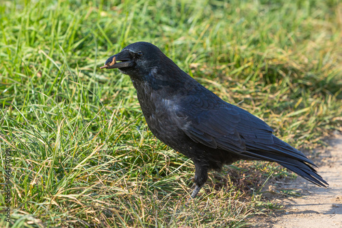 raven with food in his beak
