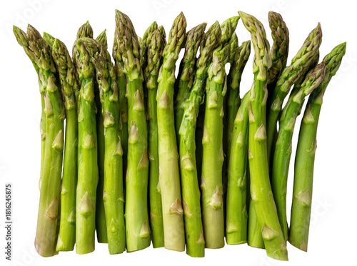 Raw asparagus stalks arranged neatly, isolated on transparent background, modern food presentation, bright lighting