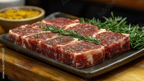 food, raw, beef, meat, steak, cube, rosemary, garnish, plate, cooking, kitchen, culinary, epicure, fresh, protein, dinner, meal, eatery, delicious, savoury, juicy, red, closeup, ingredient, favor, healthy, snack, grill, seasoned, dining, receipe, cookery, eating, organic, cube, pepper, seasoning, dish