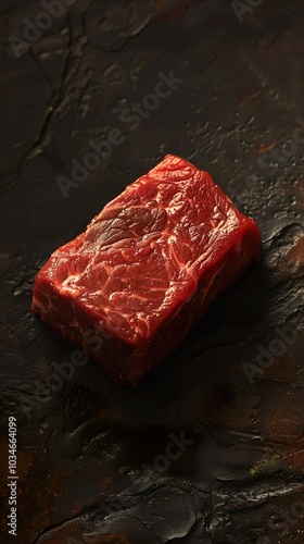 Raw Beef Steak on Black Background: Close Up Food Photography