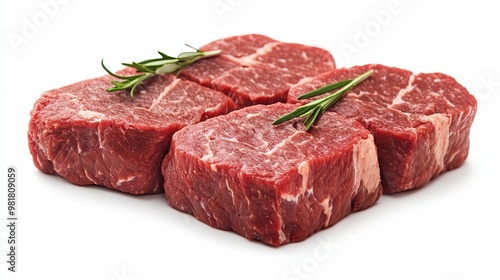 beef, steak, raw, meat, red, fresh, rosemary, sprig, food, culinary, protein, cooking, grilling, bar-b-q, delicious, juicy, tender, epicure, ingredient, healthy, diet, nourishment, dinner, lunch, meal, favor, savoury, white, background, isolated, macro, texture, marbling, fat, cut, fillet, ribeye, sirloin, disrobed, tenderloin, rump, chuck, brisket, short, rib, flank, round, bottom