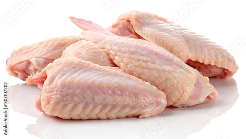 Raw chicken wings, isolated on a white background, showcasing their fresh texture and natural pinkish hue.