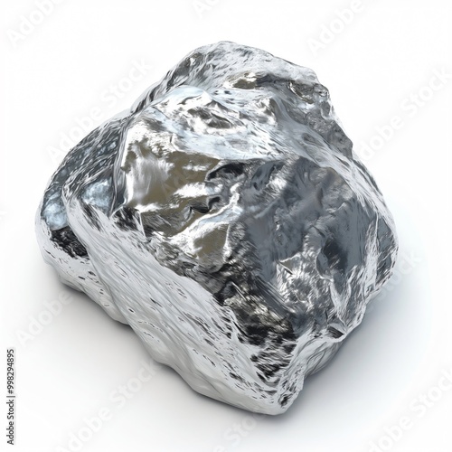 chromium, nugget, metal, raw, mineral, silver, shiny, metallic, natural, resource, element, industry, steel, alloy, stainless, hard, hard-wearing, lustrous, rare, valuable, geology, mining, extraction, white, background, isolated, single, object, close, up, no, people, three-dimensional, rendering