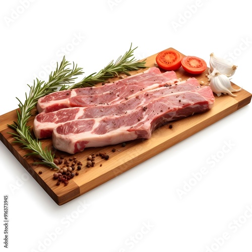 raw meat on a cutting board,Steak au poivre french steak with peppercorn sauce on white background,