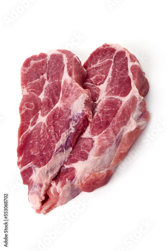 Raw pork Boston butt steaks, isolated on white background.