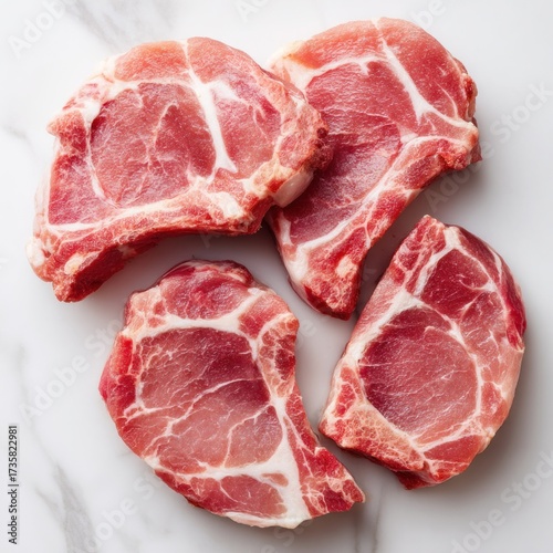 pork meat, chop, raw, meat, food, protein, uncooked, butcher, fresh, ingredient, closeup, texture, marble, white, surface, preparation, culinary, cooking, nourishment, isolated, healthy, diet, muscle, cut, steak, carnivore, marbling, butchering, pig, domesticated, animal, pork chop, food photography, topview, day, indoor