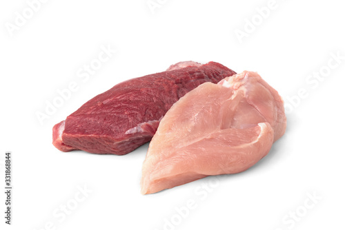 up high, assortment, background, beef, board, butcher, chicken, chop, cooking, cut, different, fillet, food, fresh, ingredient, isolated, meat, nourishment, piece, pork meat, protein, raw, red, slice, steak, tenderloin, uncooked, white, wooden
