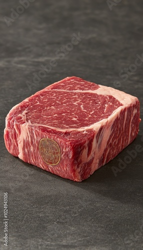 Raw Premium Ribeye Steak, Thick Cut with Intramuscular Fat, Isolated on Dark Background