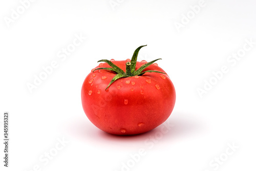 Raw ripe pink heirloom organic tomato isolated on white background. Vegetarian - Vegan healthy diet culinary cooking concept