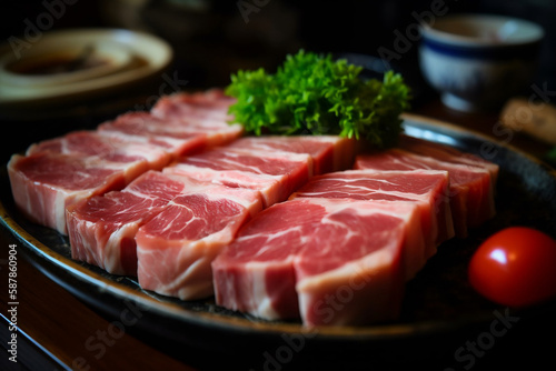 meat, food, raw, fresh, pork meat, vegetable, cooking, slice, dinner, eatery