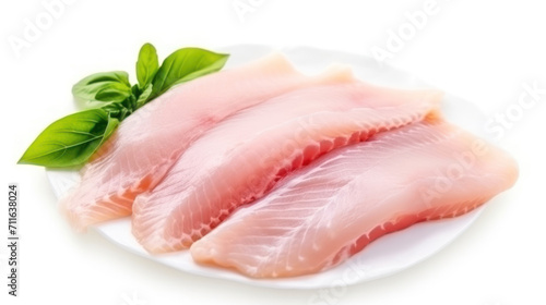 Raw tilapia fillet fish isolated on white background for cooking food/Fresh fish fillet sliced for steak,