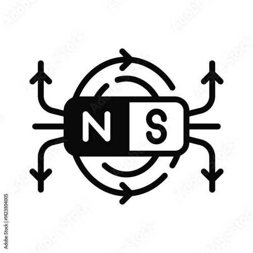 field, flux, magnetism, electromagnet, magnet, physics, science, experiment, practical, study, research, scientific, filled, glyphs, solid, icon, vector