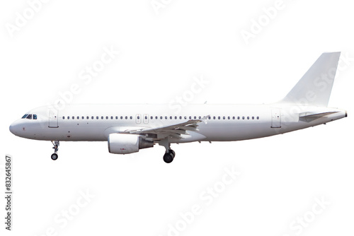 Real Commercial Airplane Airbus 320 on Transparent Background