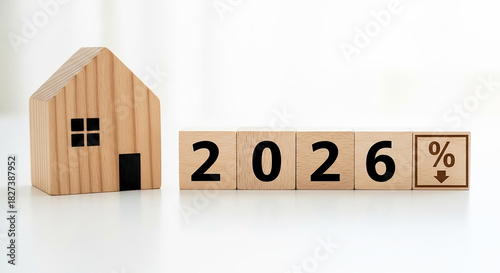 rate, down, falling, interest, market, real, estate, wooden, house, block, future, percentage, mortgage, finance, economy, investment, symbol, home, construction, property, residential, commercial, building, growth, forecast, trend, 2026, sale, planning, management, decrease, reduction, opportunity, prediction, housing, price, savings, debt, loan, budget, value, buying, selling, analysis, economic, indicator