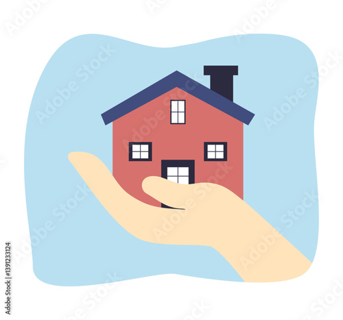 Real estate icon concept. Hand holding house icon.