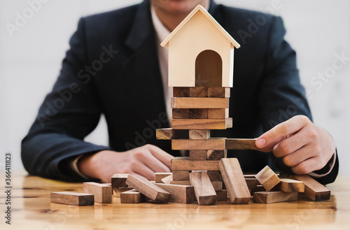 Real estate planning and financial investment risk prevention, Financial agents support the logs of wood to prevent the risk of the house.