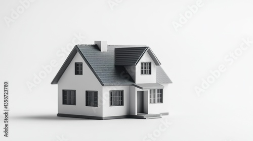 Real estate representation of a small gray house model minimal detailing clean and simple isolated on bright white background.