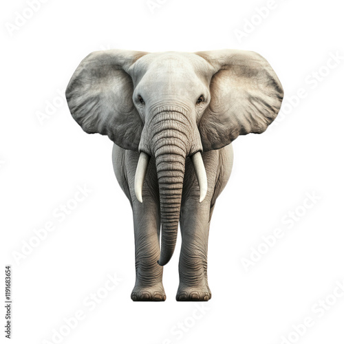realistic 3d rendering of an elephant. showcasing its large ears. long trunk. and tusks against a plain white background the depiction emphasizes the majestic and gentle nature of elephants. making it
