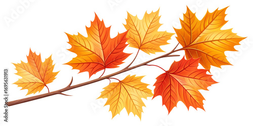 autumn, fall, tree branch, autumn leaf, fall leaf, orange leaf, yellow leaf, nature, foliage, botanical, autumn foliage, warm colors, natural background, plant, tree branch, colorful leaves, maple leaf, digital illustration, wilderness