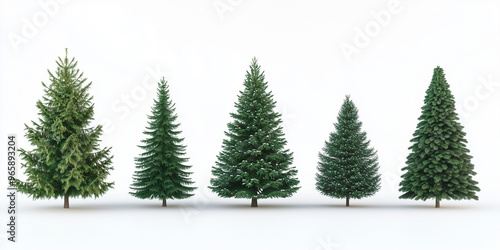 Realistic Christmas Trees of Different Sizes and Shapes on White Background