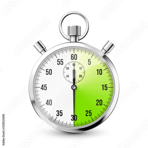three-dimensional, chronometer, illustration, stop, stopwatch, timer, speed, countdown, object, isolated, vector, arrow, accuracy, deadline, design, measure, symbol, background, number, precision, competition, equipment, counting, circle, graphic, interval, measurement, meter, silver, hours, race, signs, counter, business, metallic, web, second, minute, dial, watch, face, clock, time, metal, chrome, icon, sport, start, finish, green