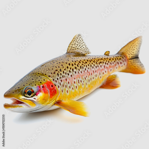Realistic depiction of a colorful trout fish showcasing vibrant patterns, fine details, and bright colors on a clean background ideal for culinary or nature-themed projects.