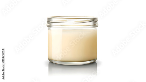Realistic display of coconut oil in a glass jar on a white background, emphasizing its clear, viscous texture